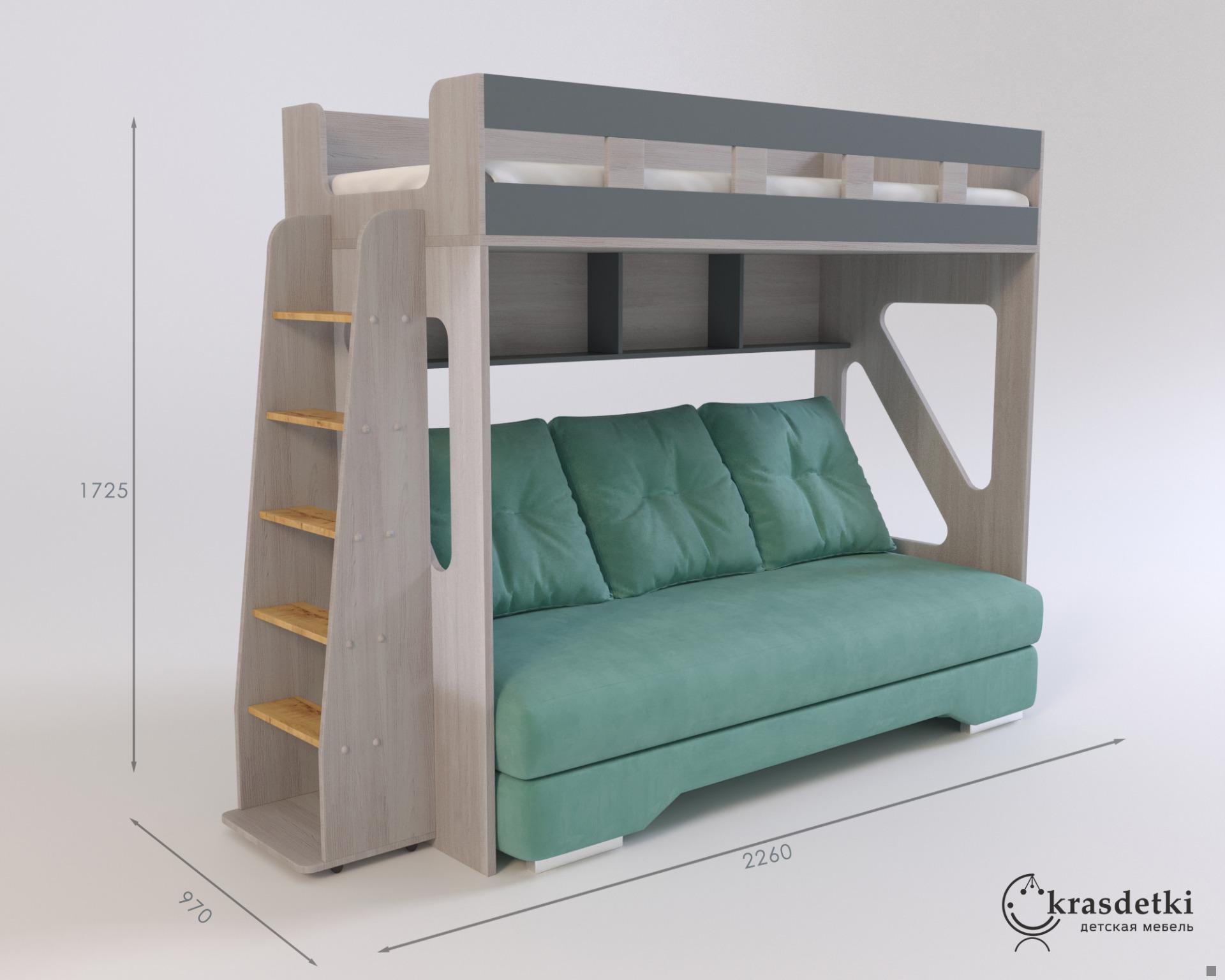 Идеальный вариант для малогабаритных квартир. Уютная кровать на втором ярусе придется по душе любителю подвижных игр. За безопасность ребенка можно не переживать, ведь такой вариант места для отдыха оснащен защитным бортиком. Оборудованное внизу рабочее место позволит расположить все необходимое для самых юных на небольшой площади.